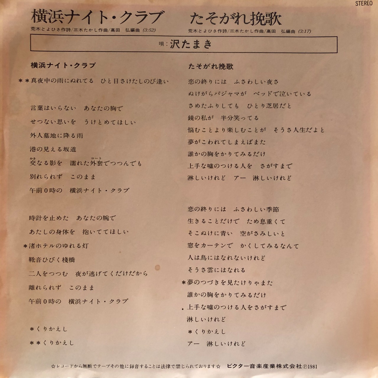 女優でシンガー、その後政治家に転身した沢たまき’81年シングル。