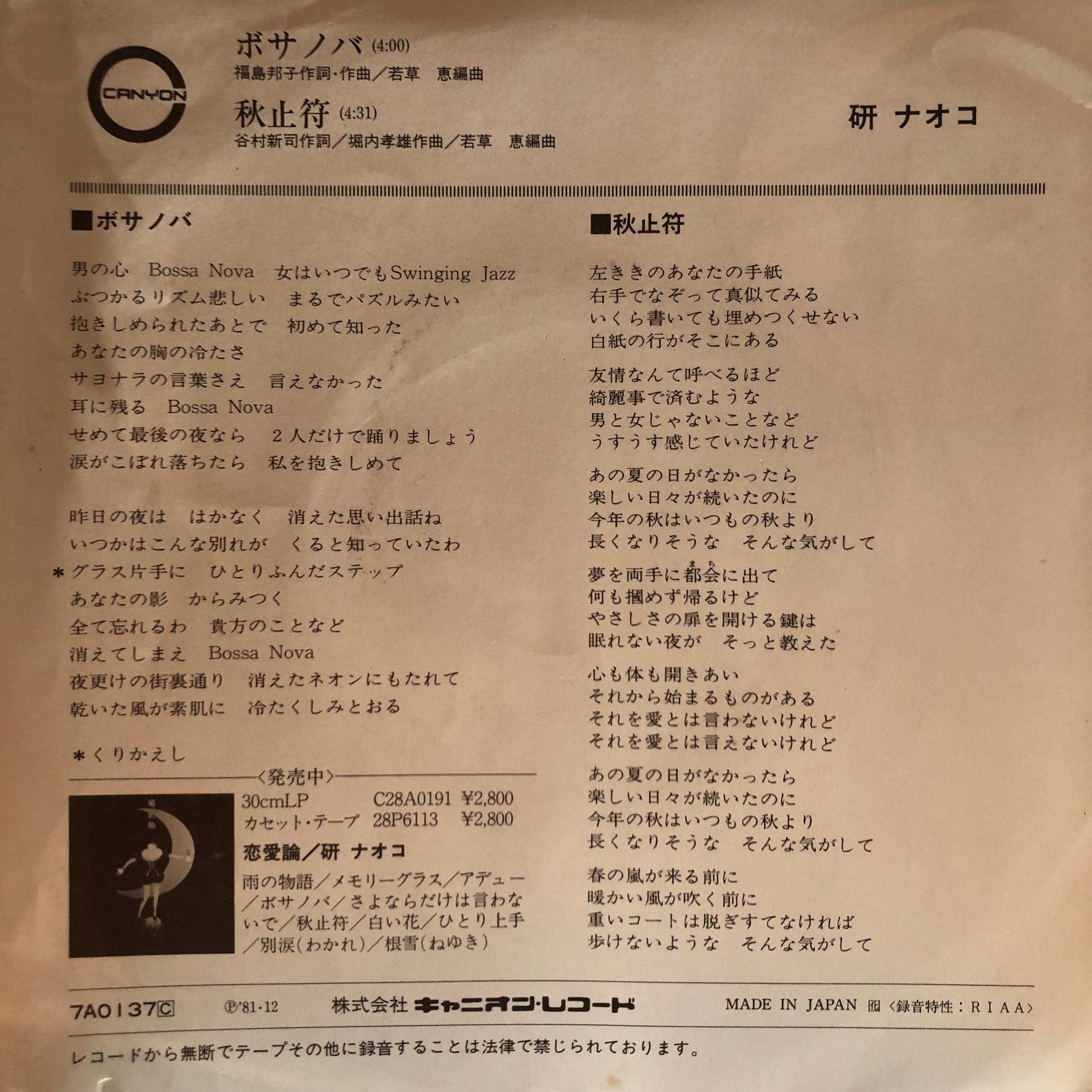 SSW福島邦子作品をカヴァーした’81年シングル。