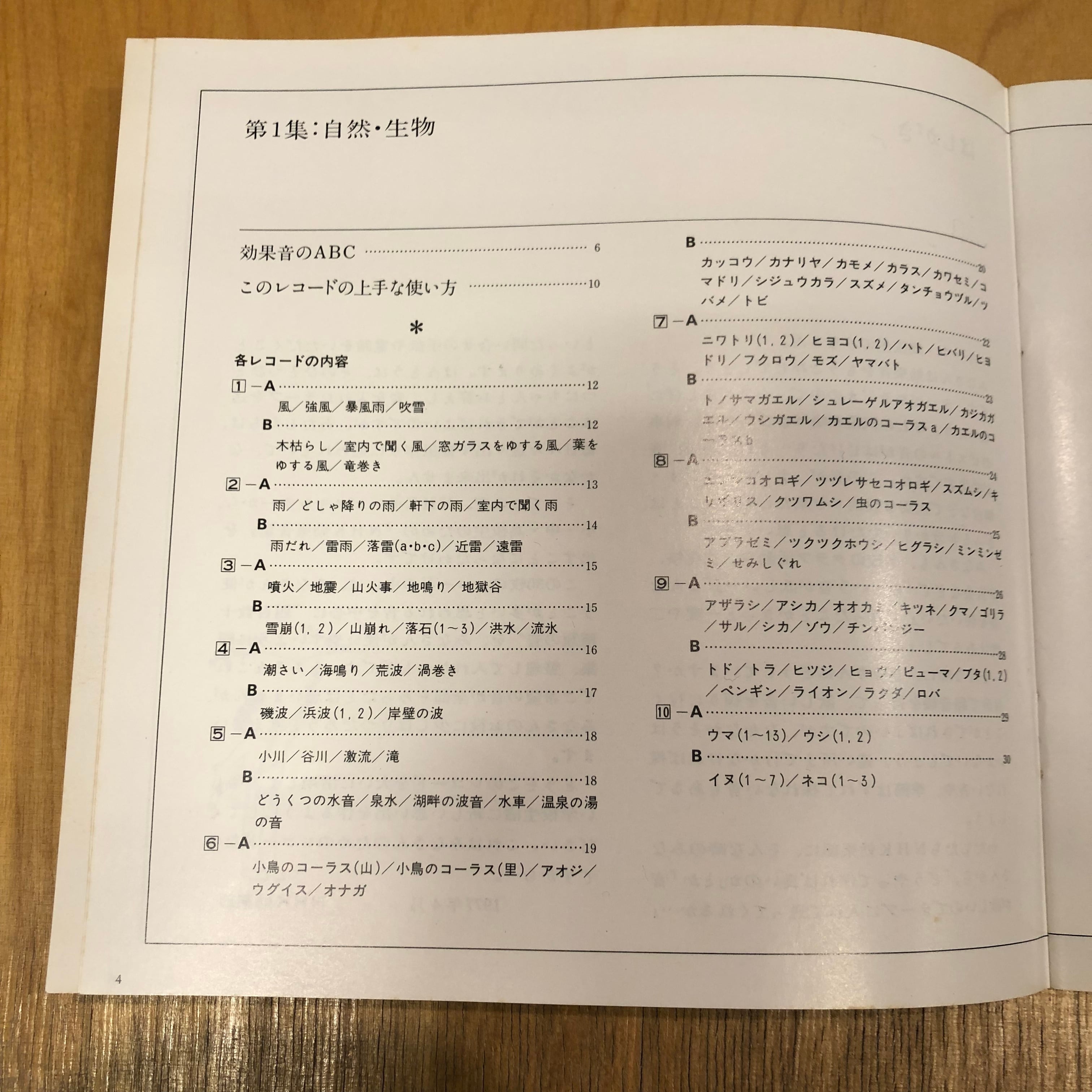雨や風、潮騒や水音を収めた自然音と小鳥の囀りや猫の鳴き声等収めた生物音のEP10枚組。