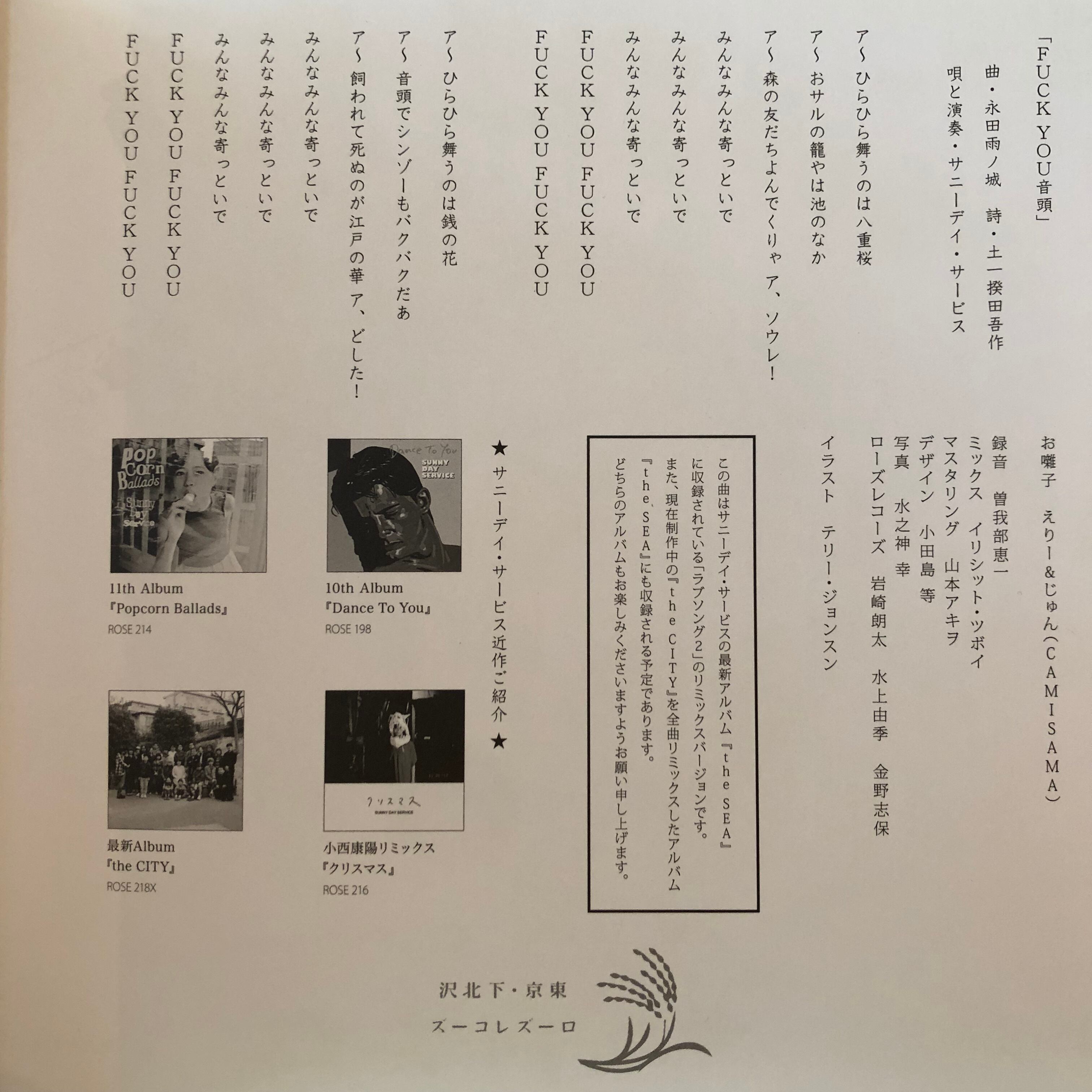 【EP】サニーデイ・サービス / FUCK YOU 音頭