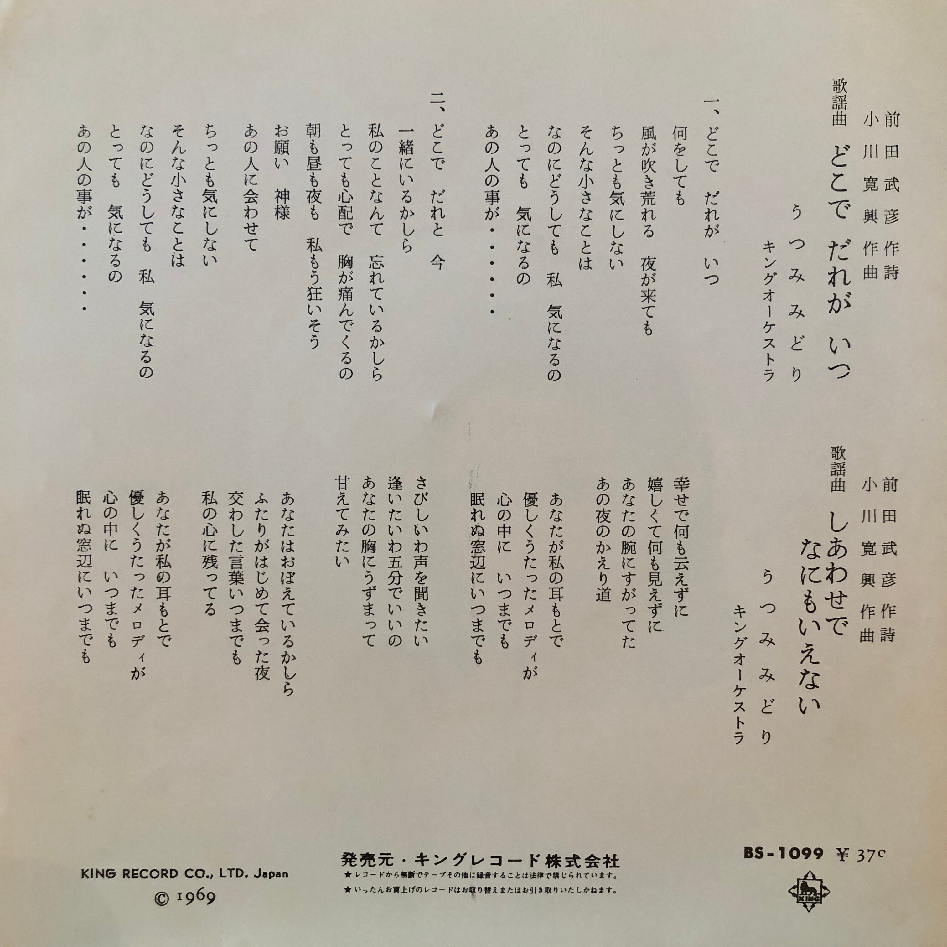 女優うつみみどり(宮土理)'69年2ndシングル。