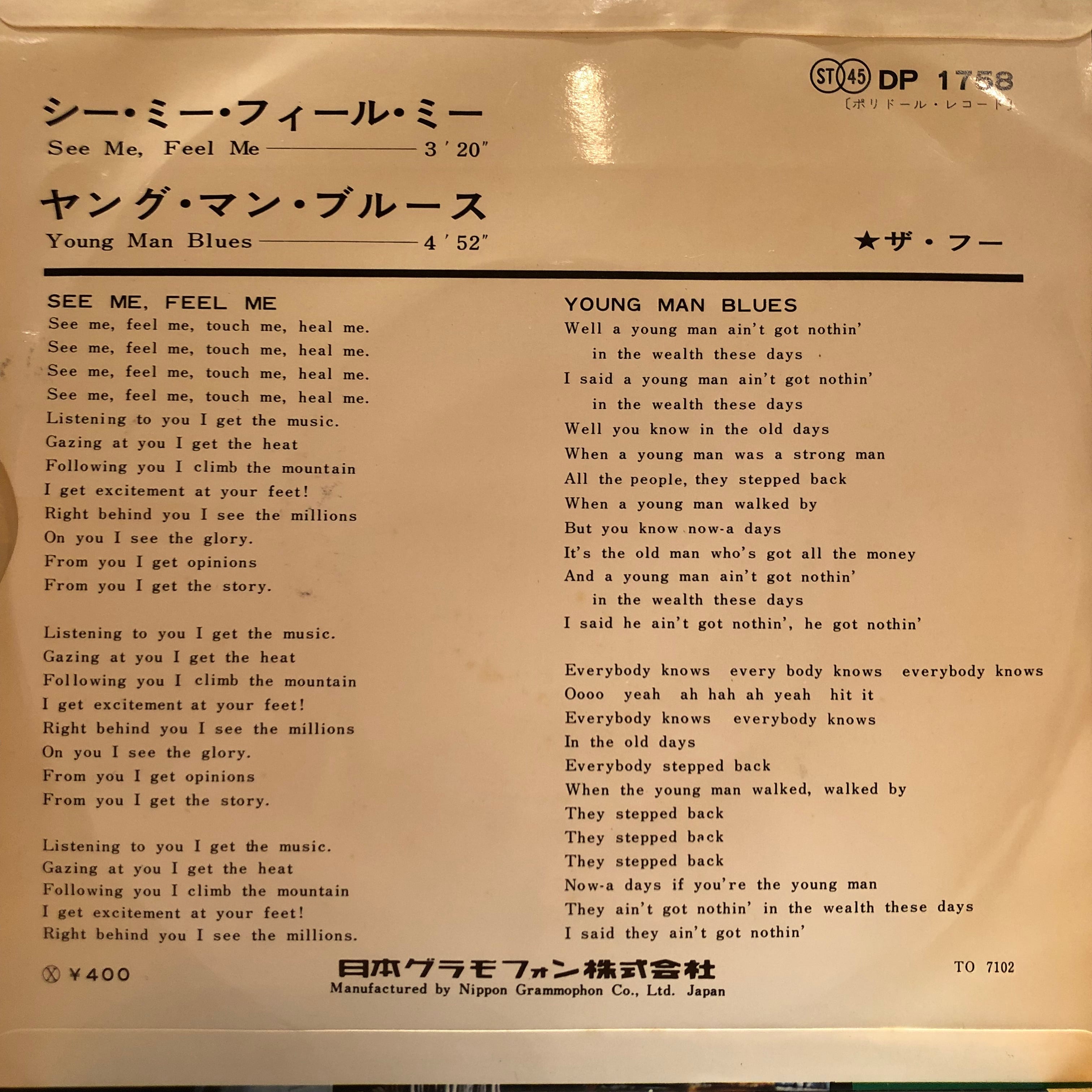 ロックオペラアルバム「Tommy」クライマックスの名曲をシングルカットした’71年作。