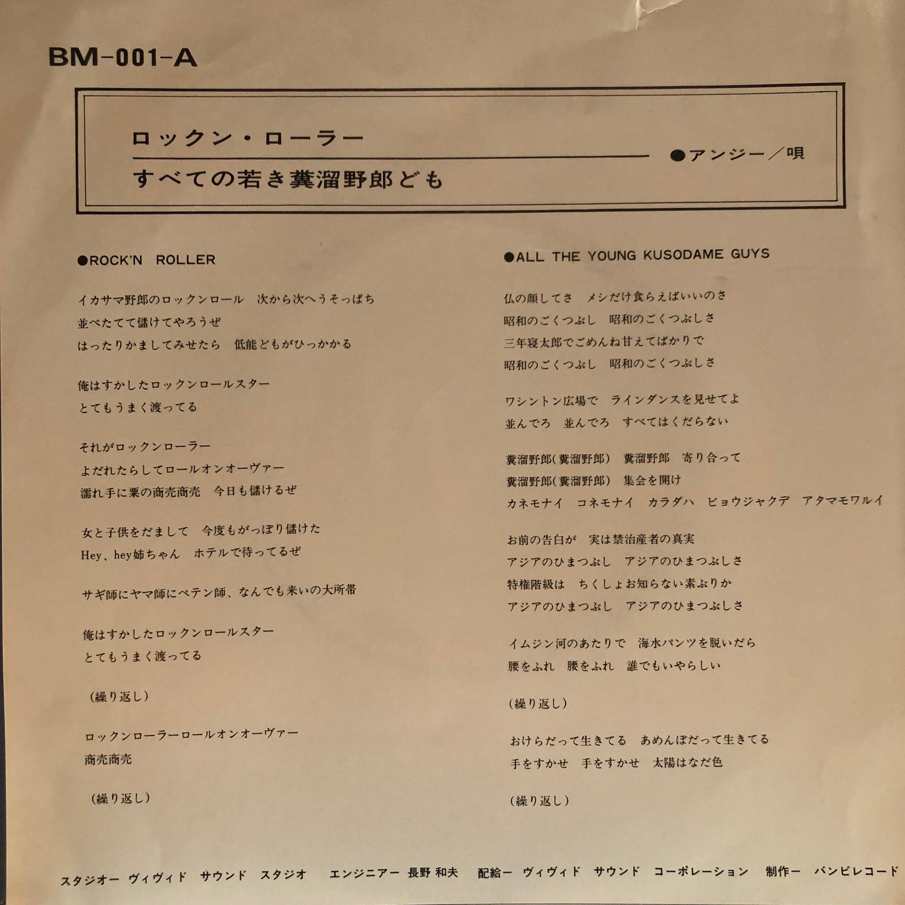 水戸華之介率いる博多のビートパンクグループ’87年自主制作デビューシングル。