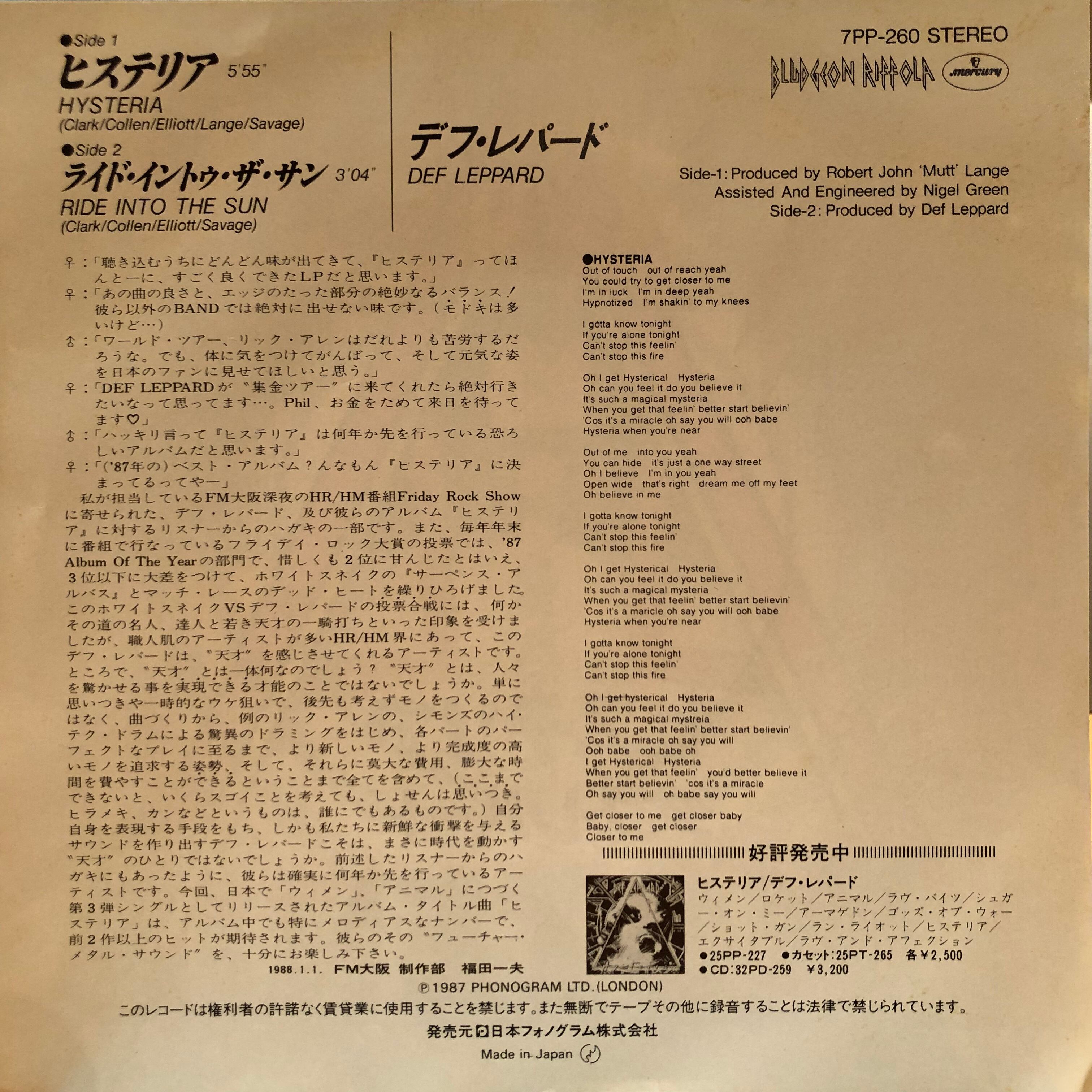 【EP】デフ・レパード / ヒステリア