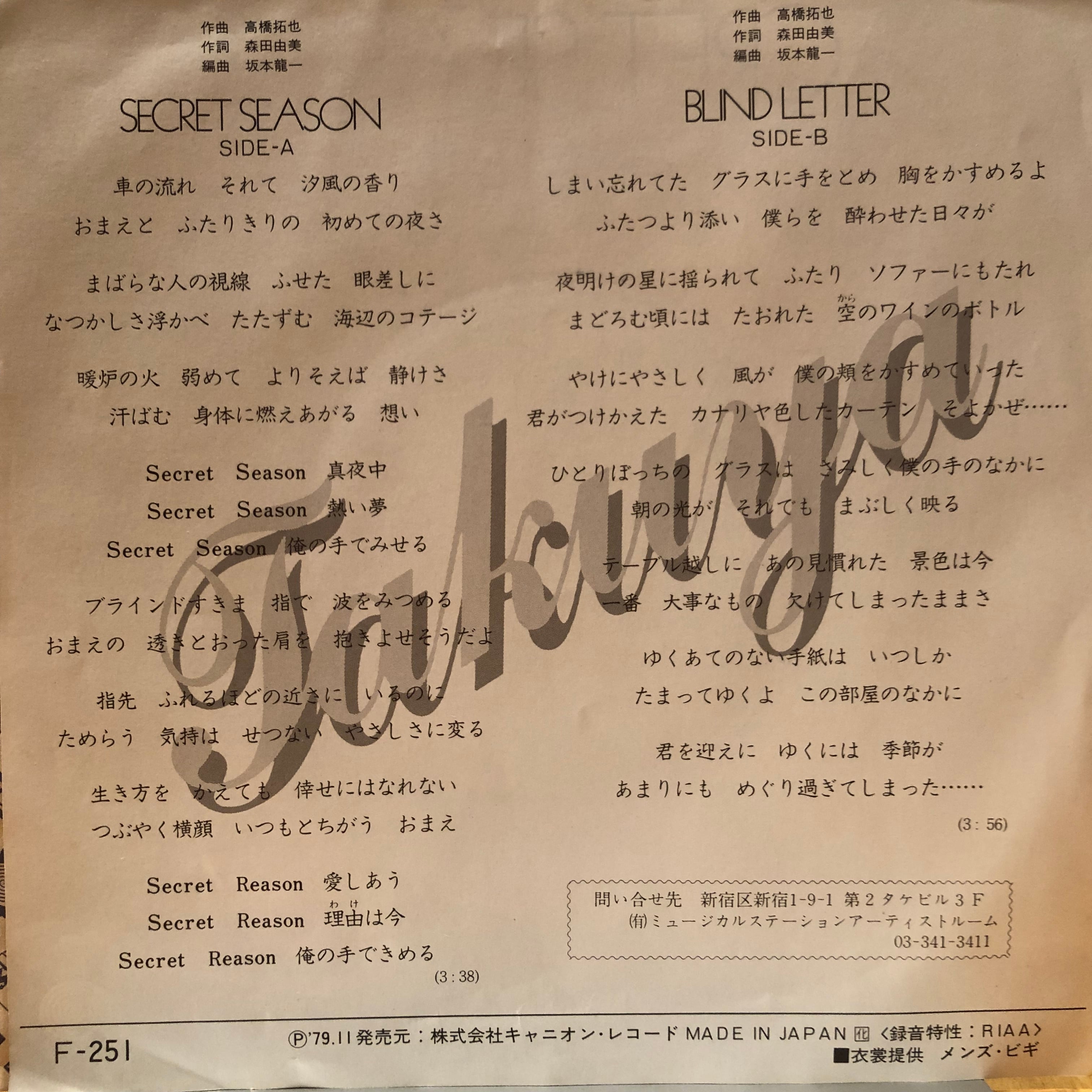 湘南ソフトロックグループLouの中心人物、アルバム未収の’79年2ndソロシングル。