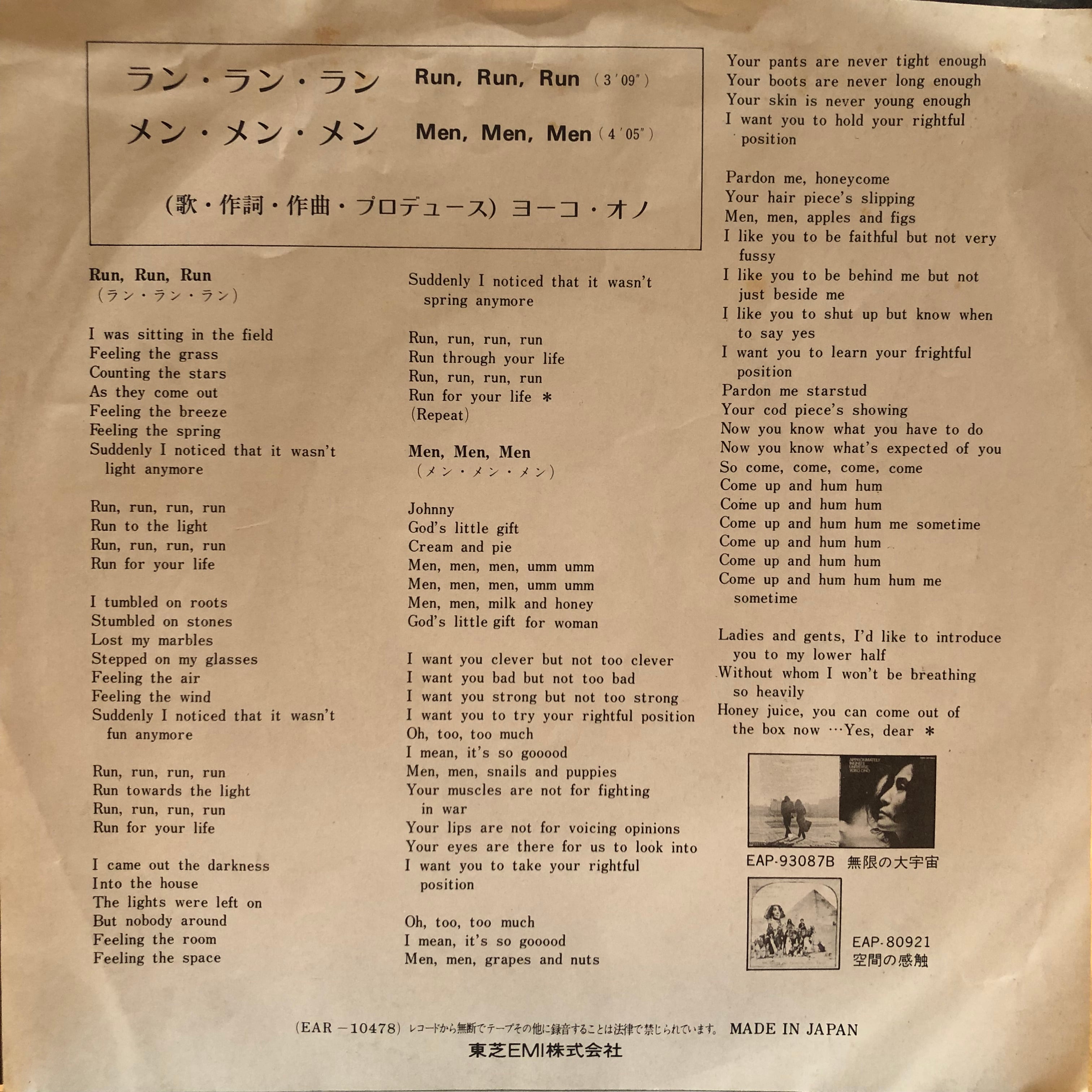 【EP】ヨーコ・オノ / ラン・ラン・ラン