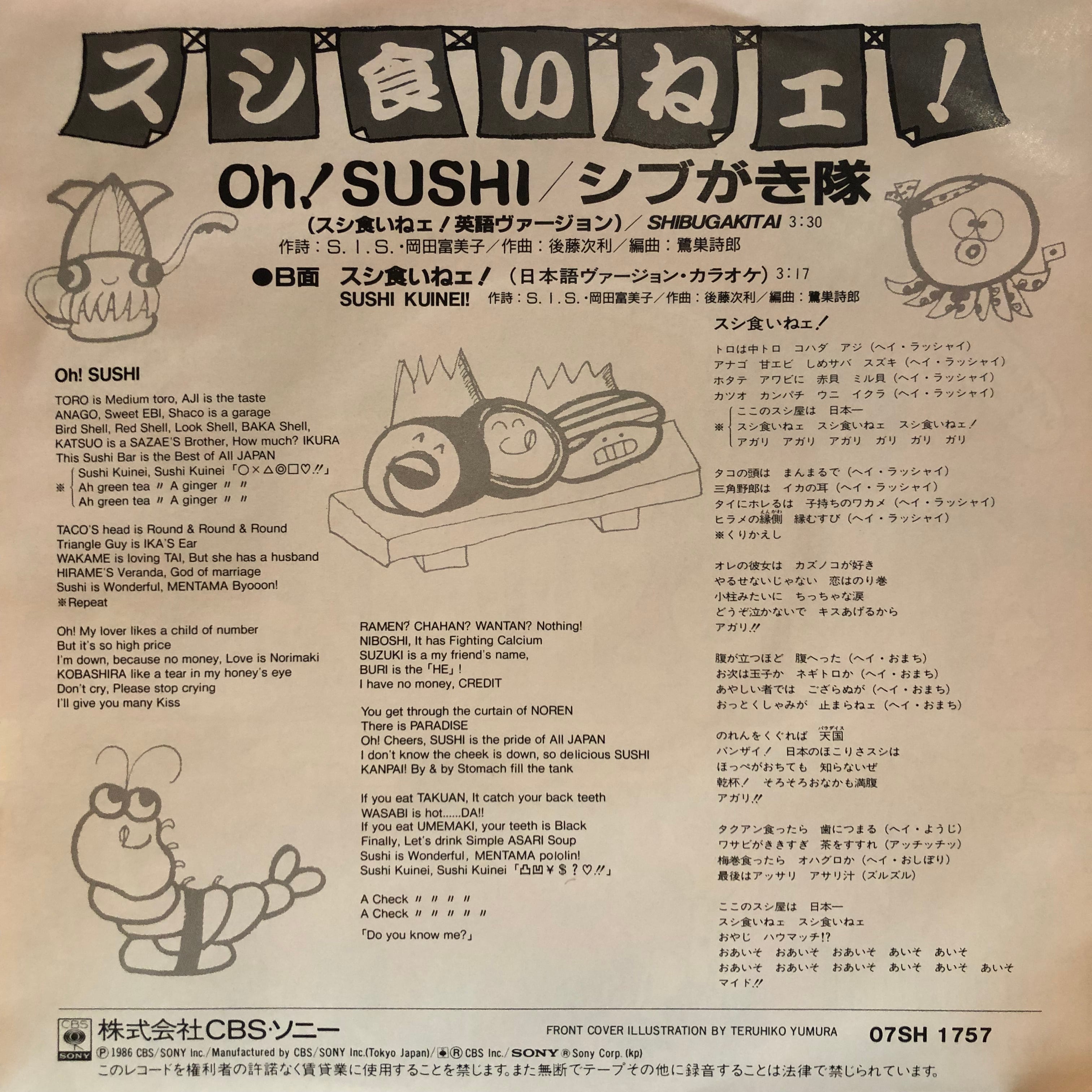 ジワジワリリシスト岡田冨美子が作詞を手がけたシブがき隊最大のヒット曲「スシ食いねェ!」’86年英語ヴァージョン。