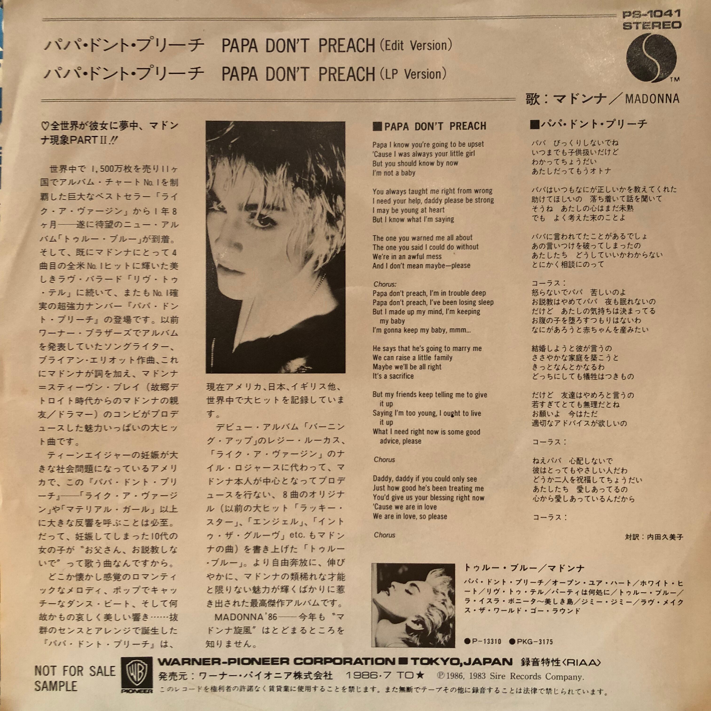 【EP】マドンナ / パパ・ドント・プリーチ