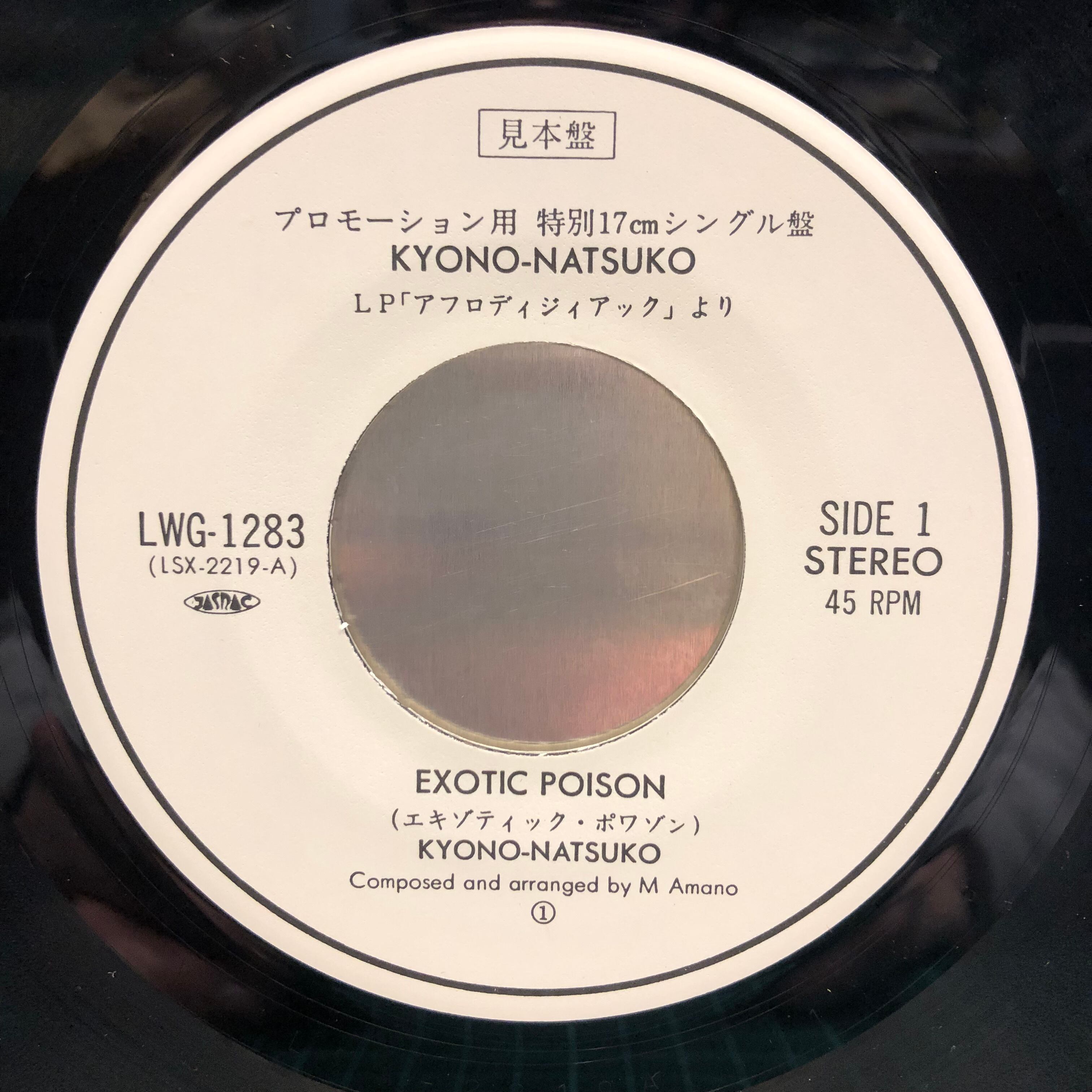 女優でピアニスト響野夏子’86年デビューアルバム「Aphrodisiaque」からのプロモオンリーシングル。