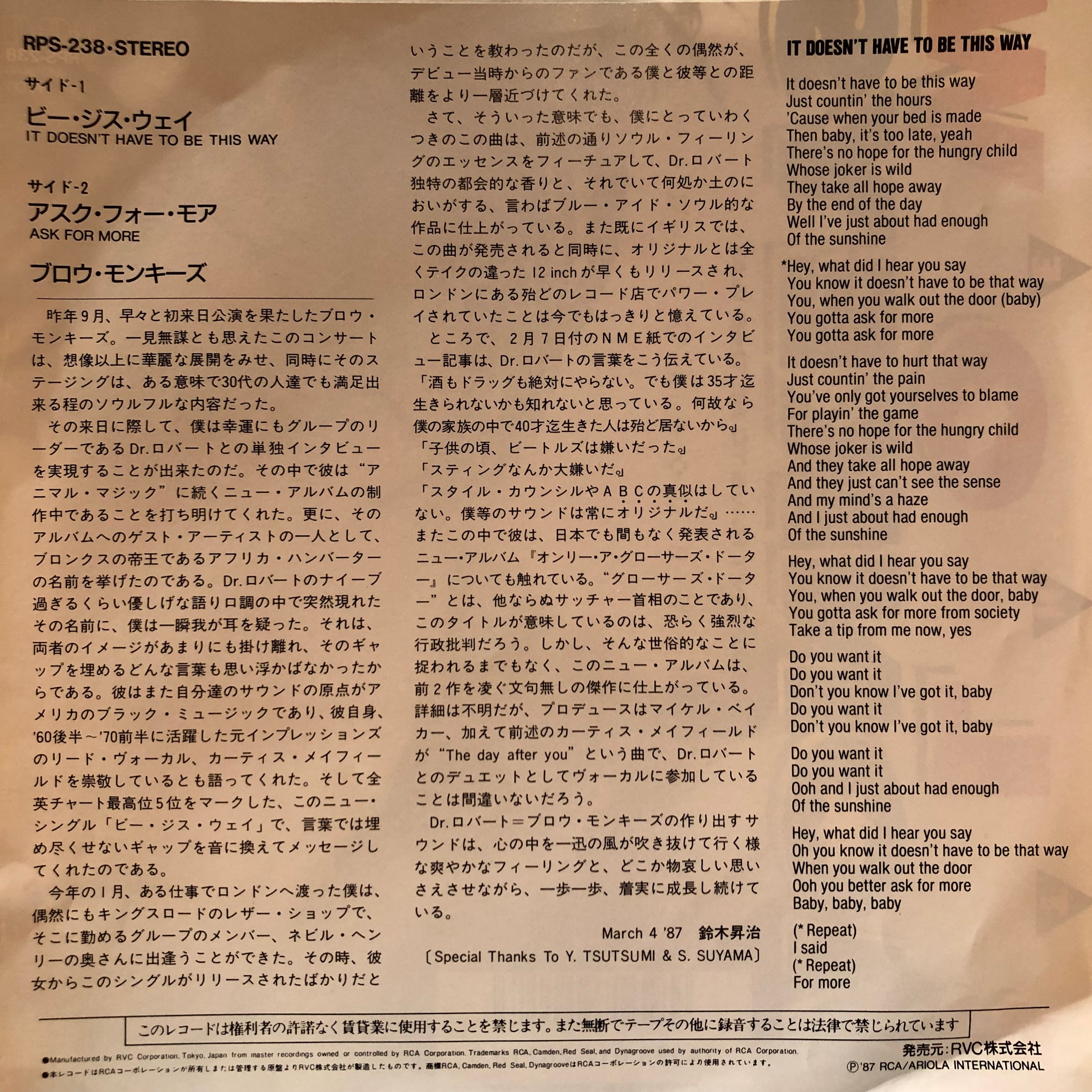 【EP】ブロウ・モンキーズ / ビー・ジス・ウェイ