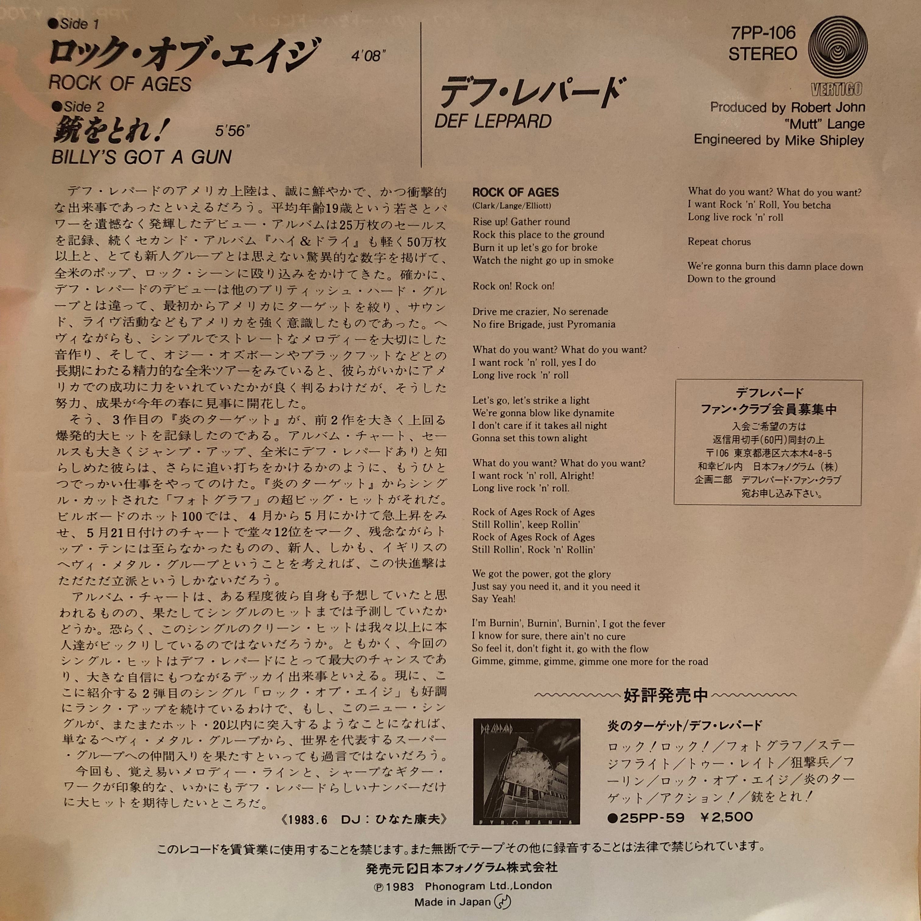 3rdアルバム「Pyromania」からの2ndシングル。