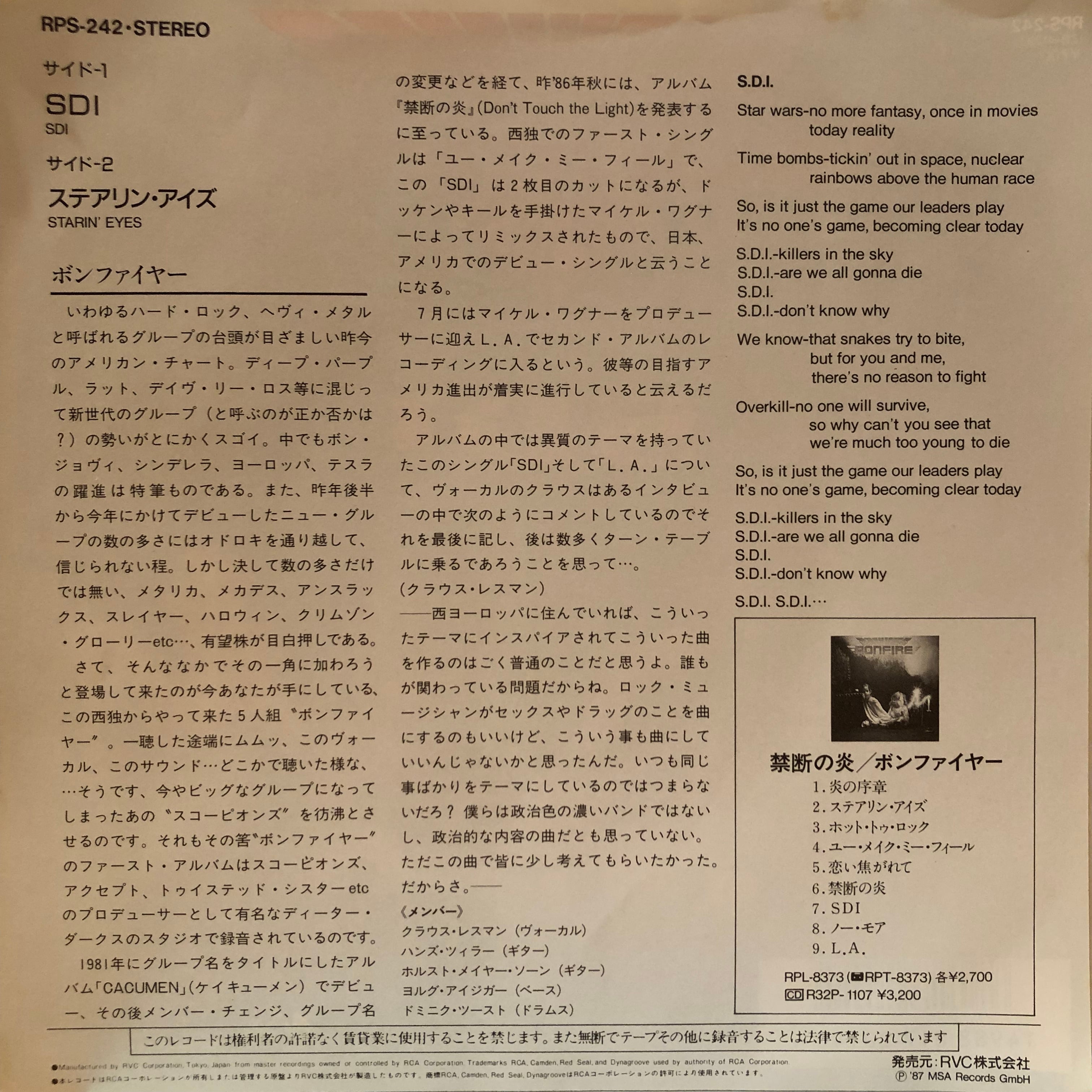 【EP】ボンファイヤー / SDI