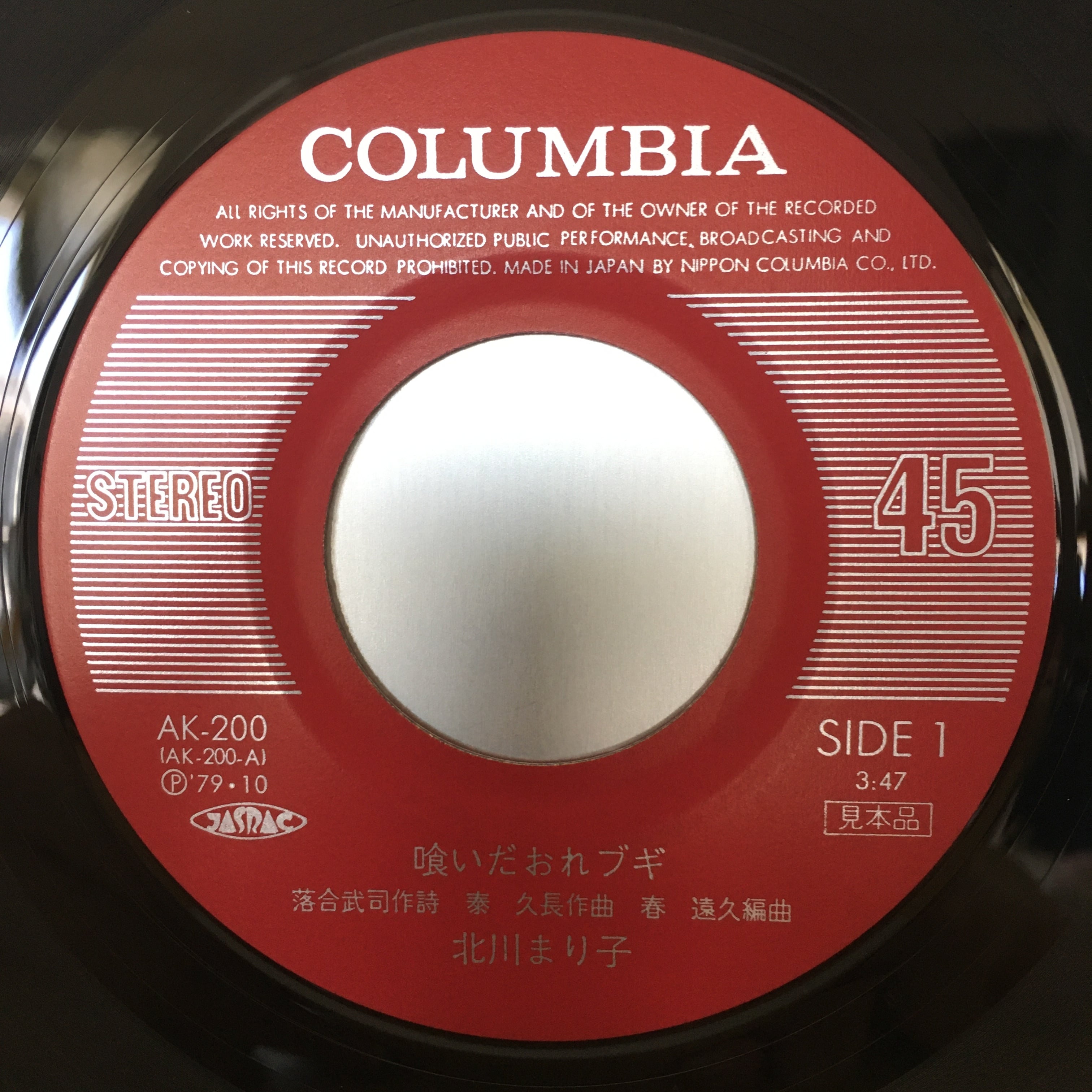 大阪を拠点に活動する演歌歌手北川まり子'79年シングル。