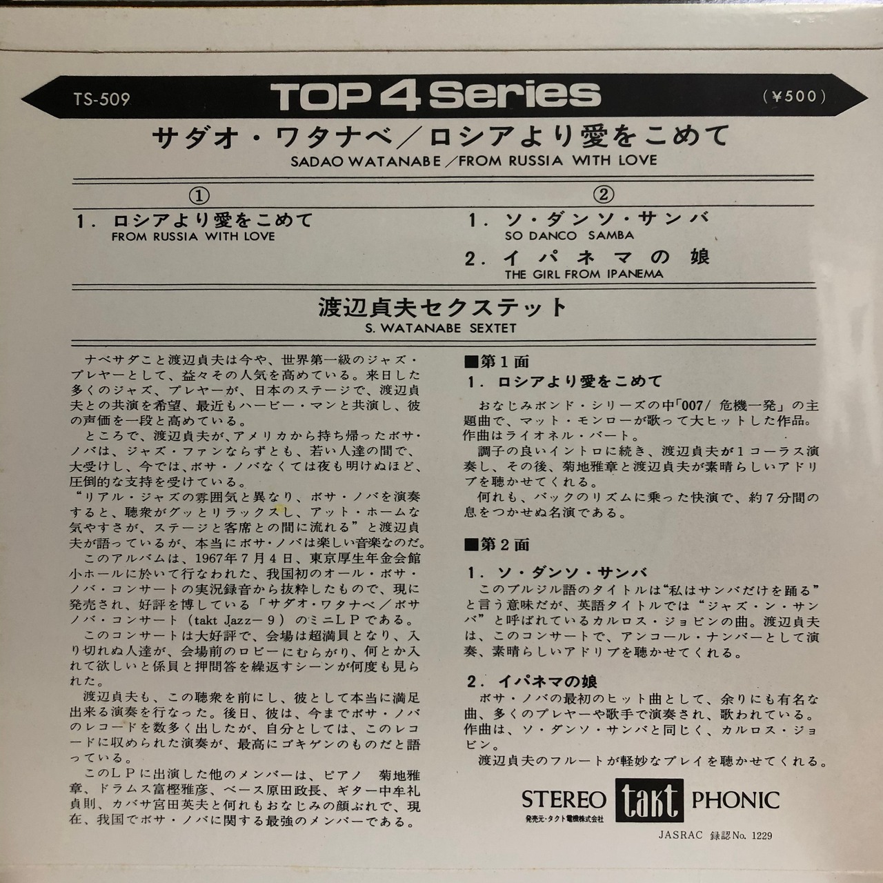 ナベサダ率いるセクステット’67年東京厚生年金会館小ホールでのライヴアルバム「ボサノバ・コンサート」からのカット。