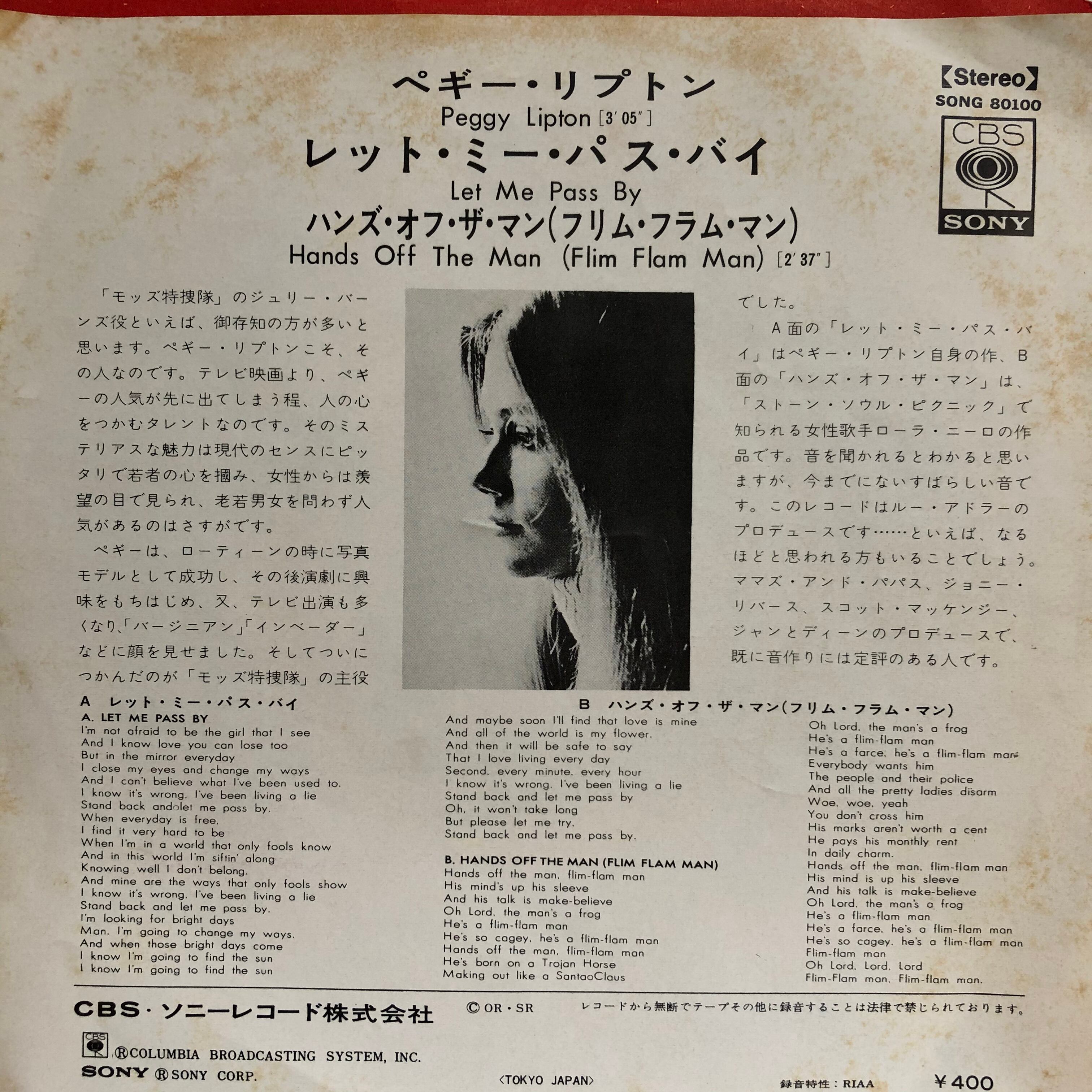 米国カウンターカルチャー世代のミューズ、女優ペギー・リプトン’68年唯一のアルバムからの日本独自シングルカット。