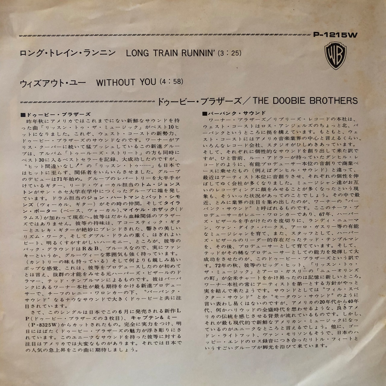 【EP】ドゥービー・ブラザーズ / ロング・トレイン・ランニン