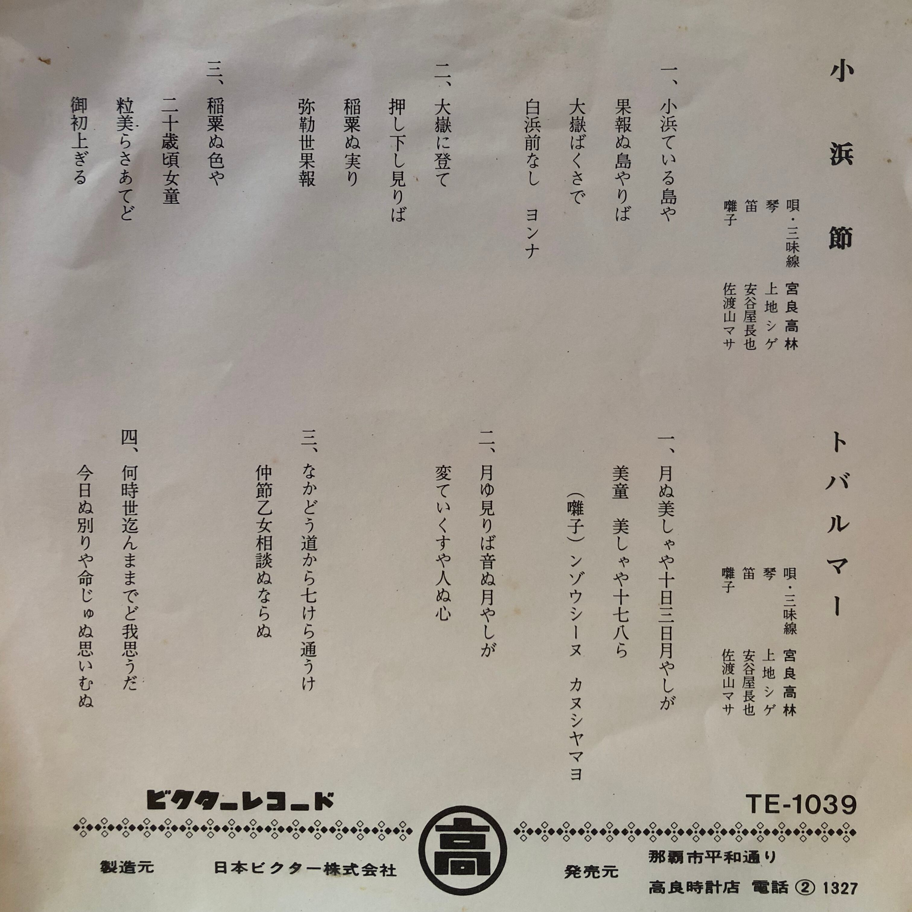 夭折の八重山民謡歌手、宮良高林の歌声を収めた貴重シングル。