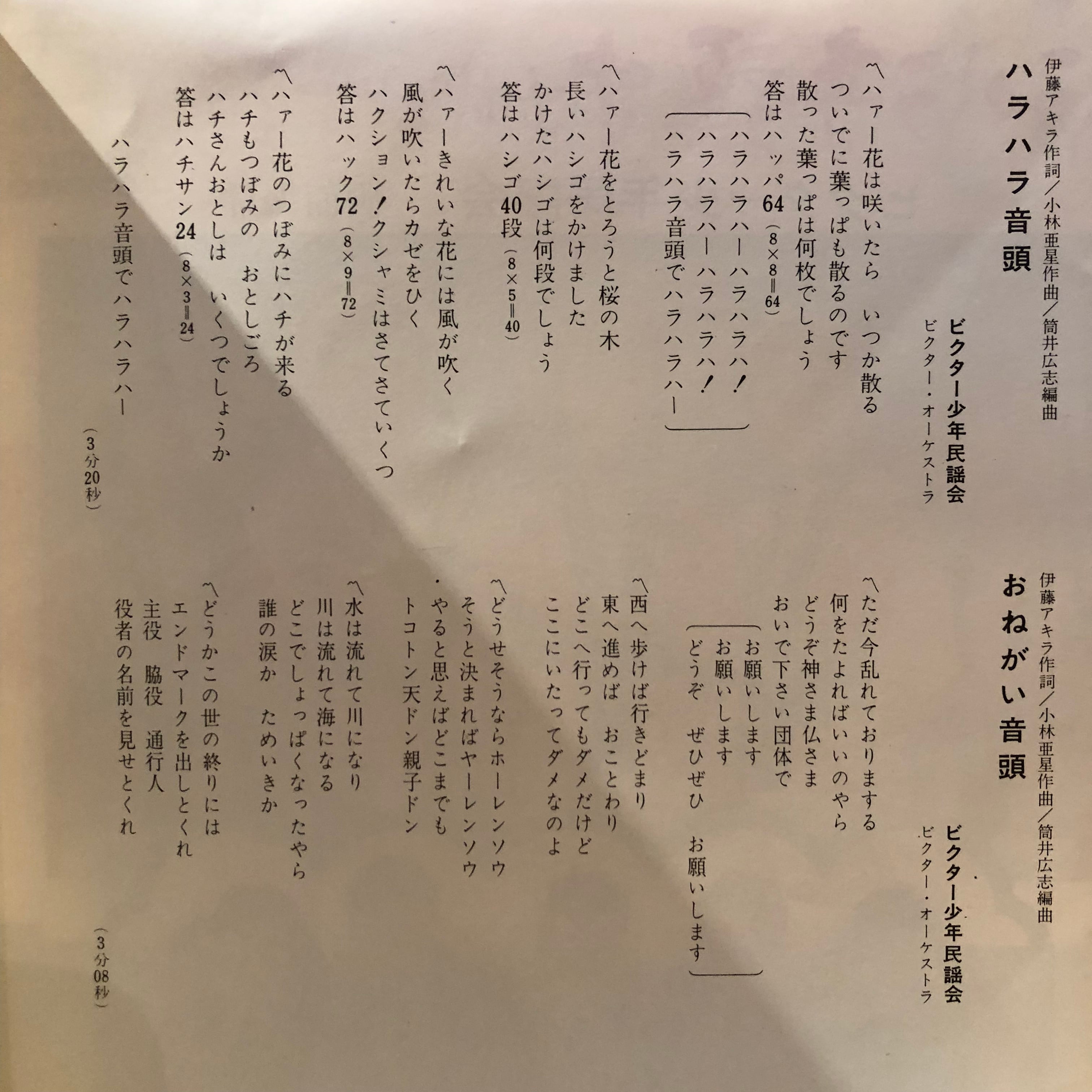 A面は掛け算を折り込んだ"ハラハラ音頭"、B面は食べ物ダジャレがキマッタ"おねがい音頭"を収録。