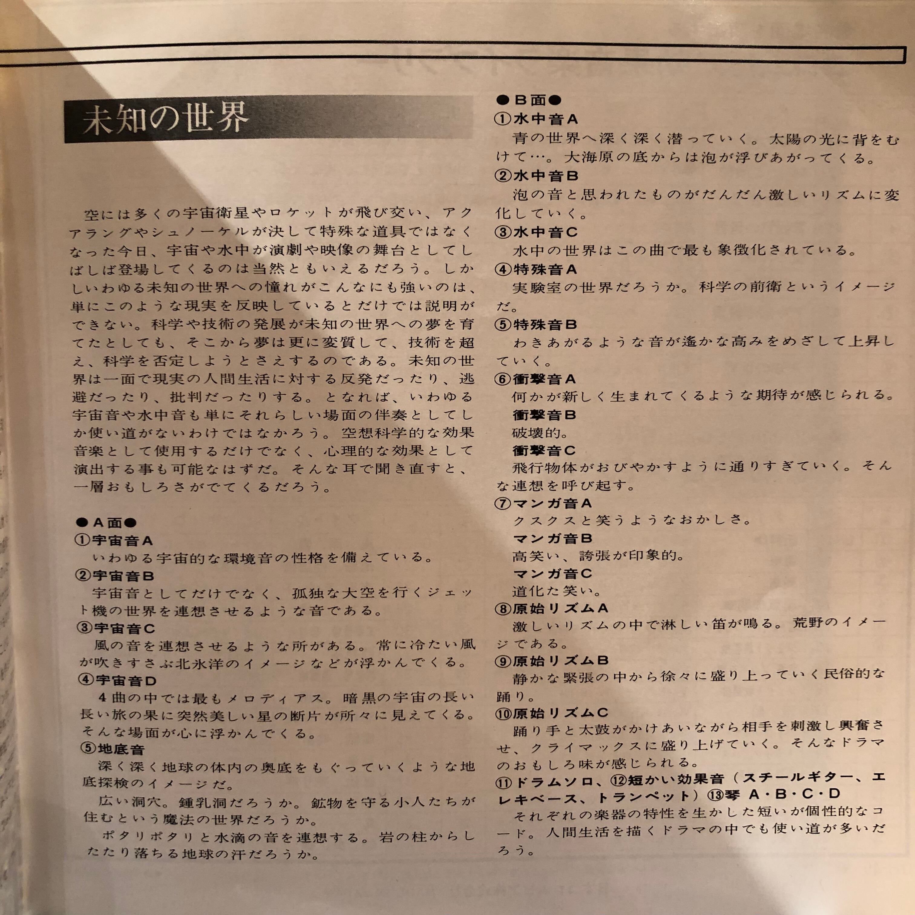 【EP】久石譲 / 効果音楽ライブラリー 未知の世界