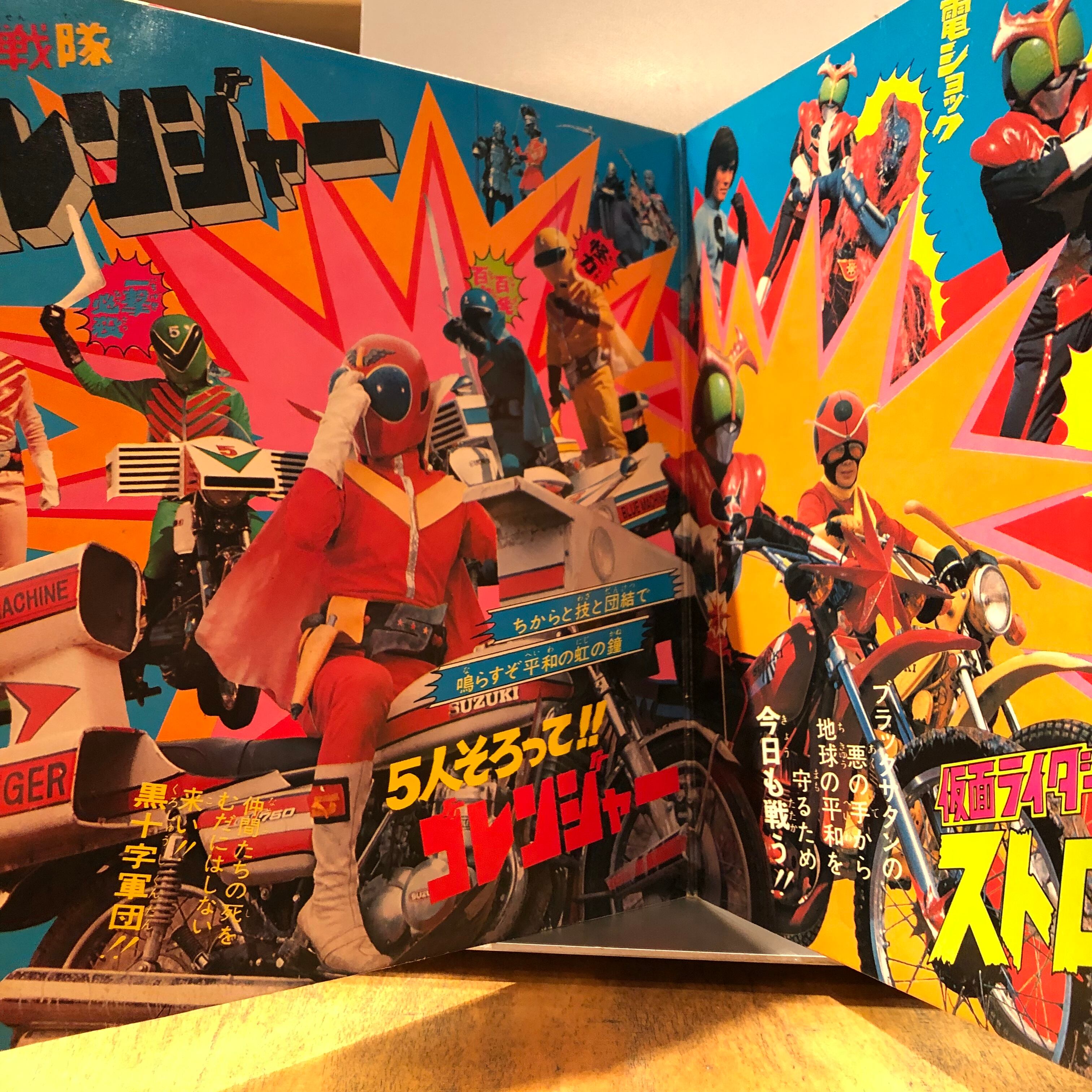 ゴレンジャーとストロンガー、ともに石森章太郎原作の特撮テレビドラマ主題歌をカップリングした’75年4曲入りコンパクト盤。