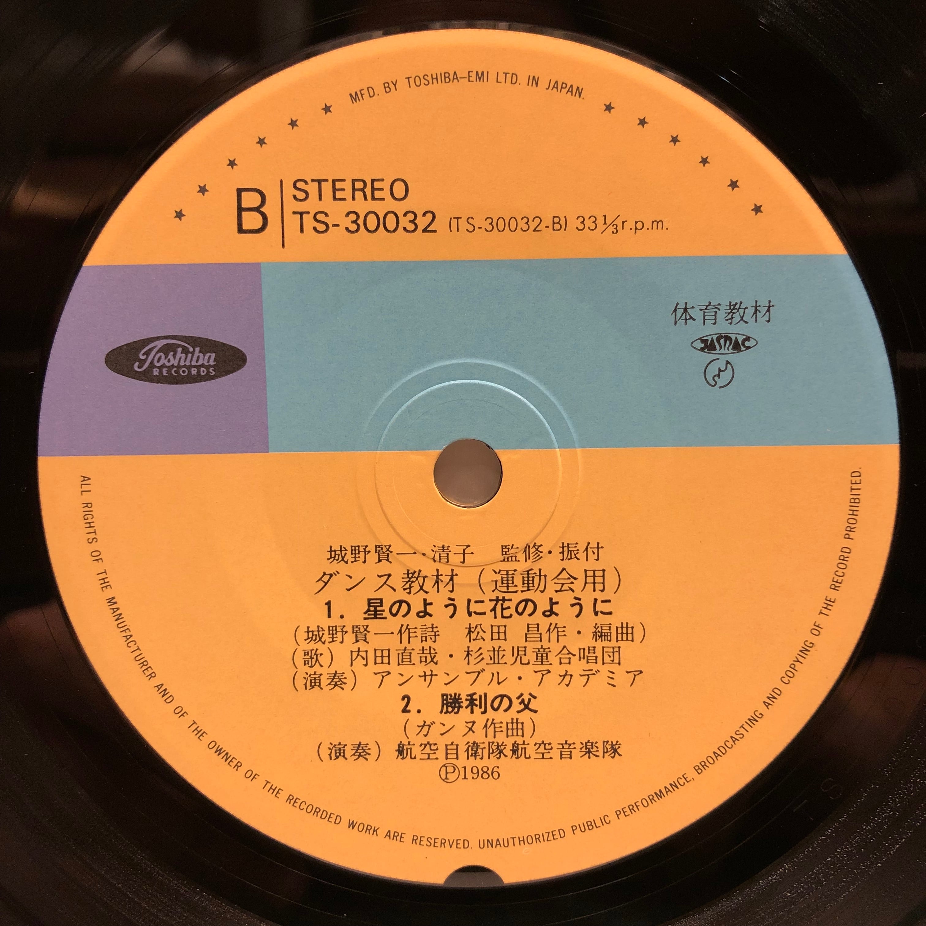 児童舞踏の第一人者、城野賢一・清子が監修した’86年の運動会用ダンス教材レコード。