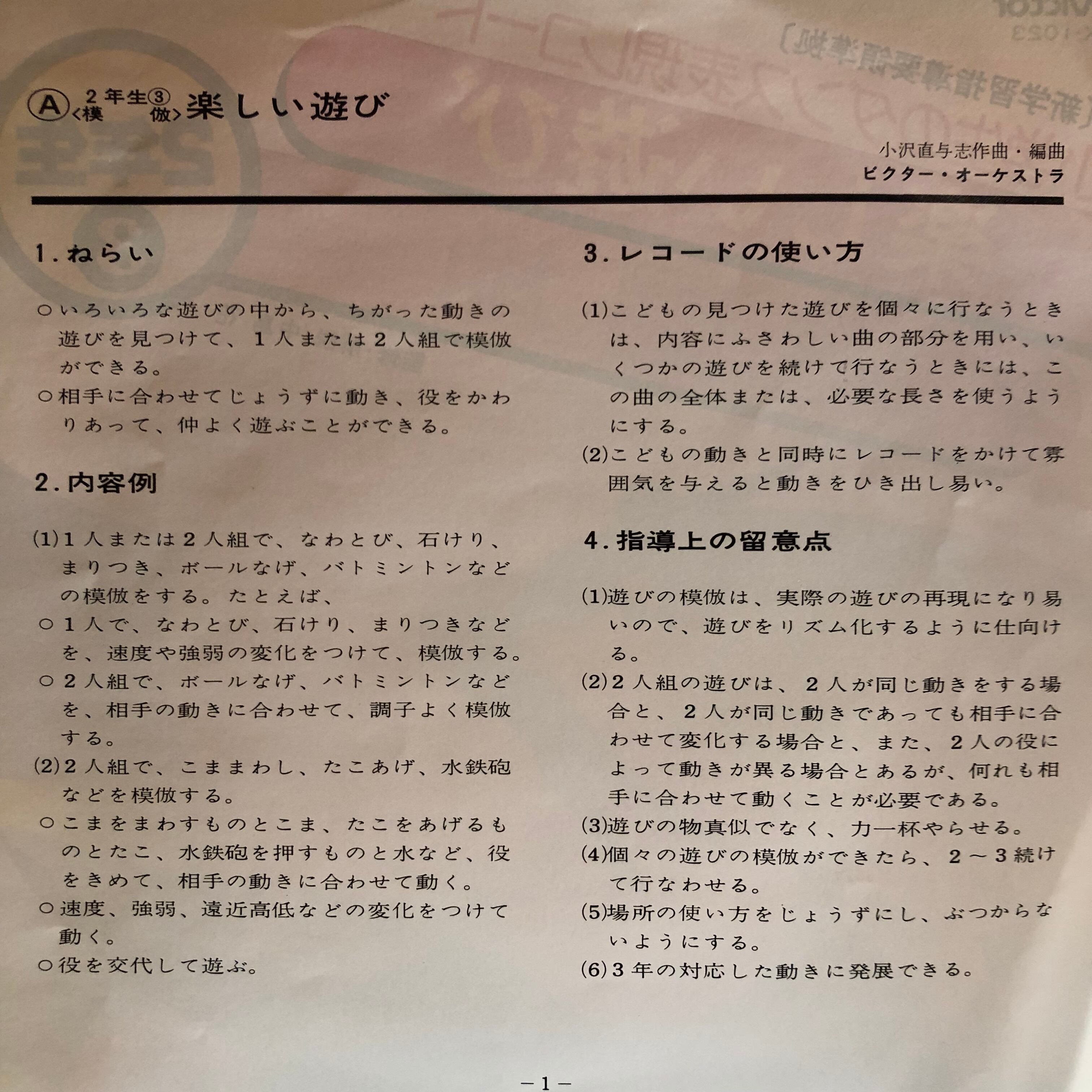 小学2年生を対象とした’78年の体育表現運動(リズムダンス)用レコード。