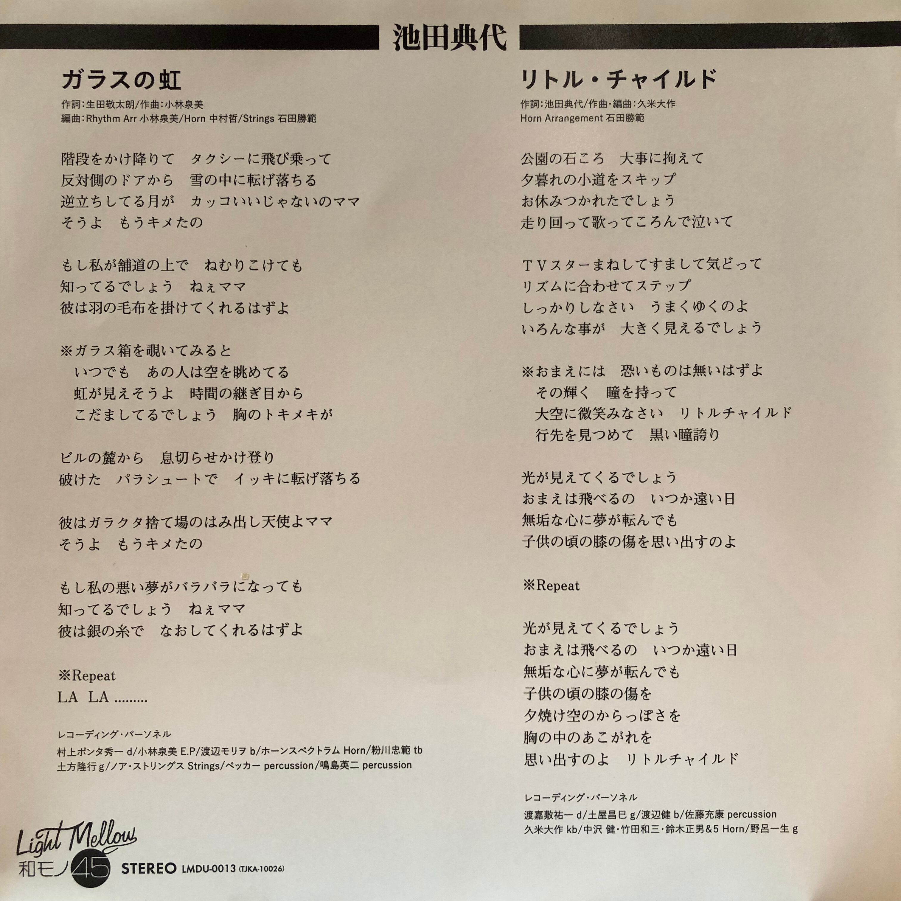 新宿&下北ロフト界隈で活動したシンガーソングライター池田典代が’80年に発表した唯一のアルバム「Dream In The Street」制作時の未発表曲をカップリングした’20年シングル。