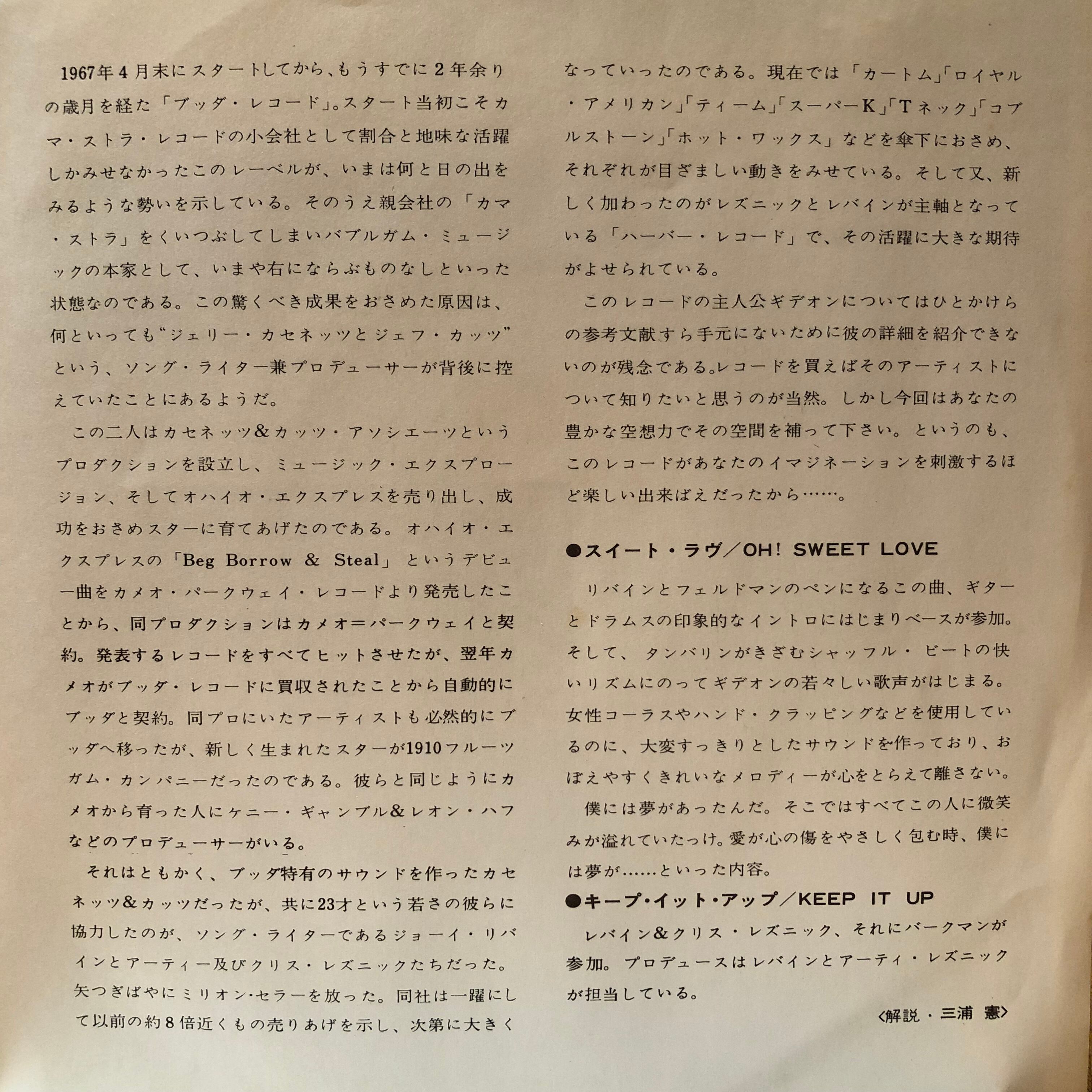 楽曲提供とプロデュースを手がけたブッダレコードのソングライター、ジョーイ・リバインの覆面プロジェクトと推測されるギデオン'69年唯一のシングル。