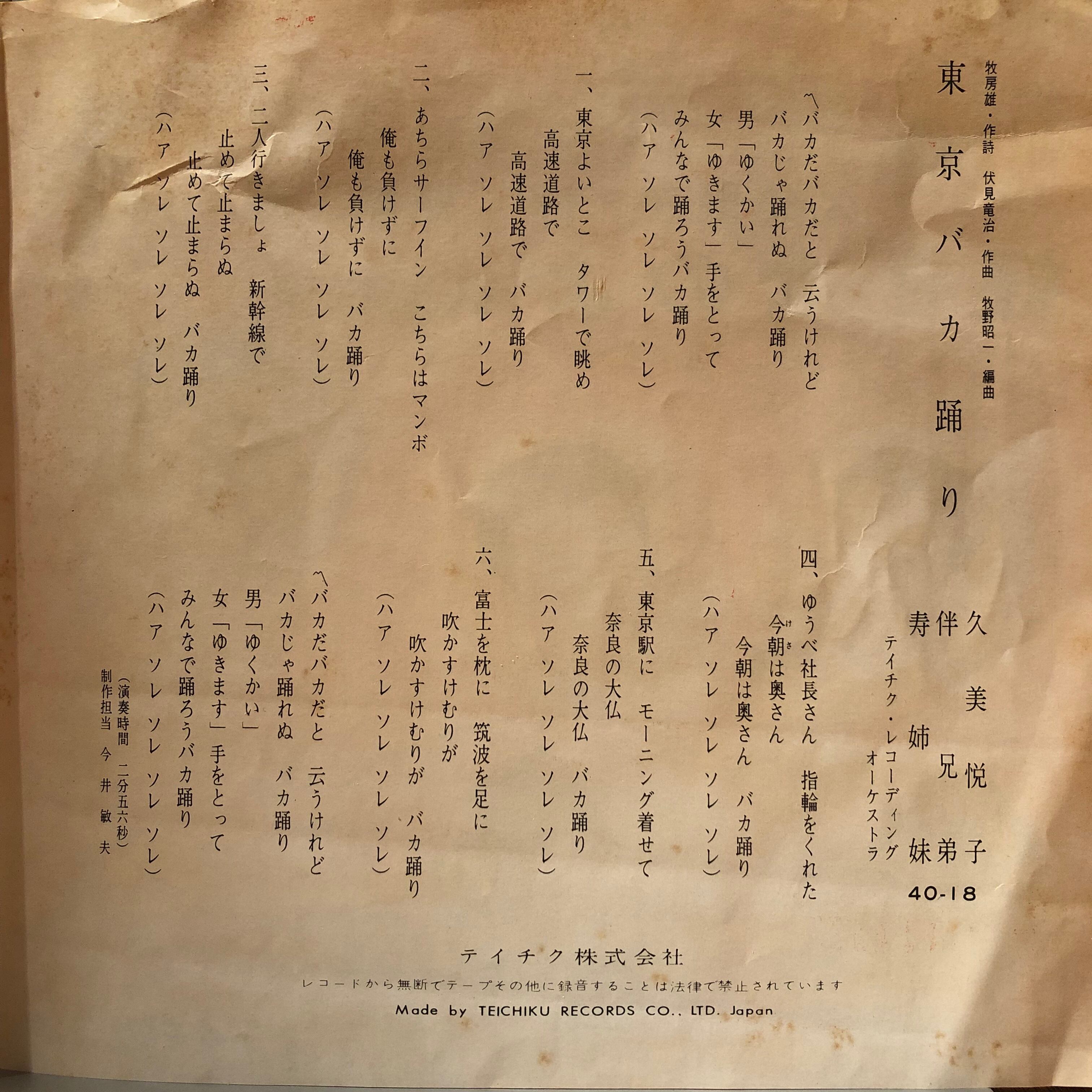 女優としても活躍した昭和の美人歌手、久美悦子’65年シングル。