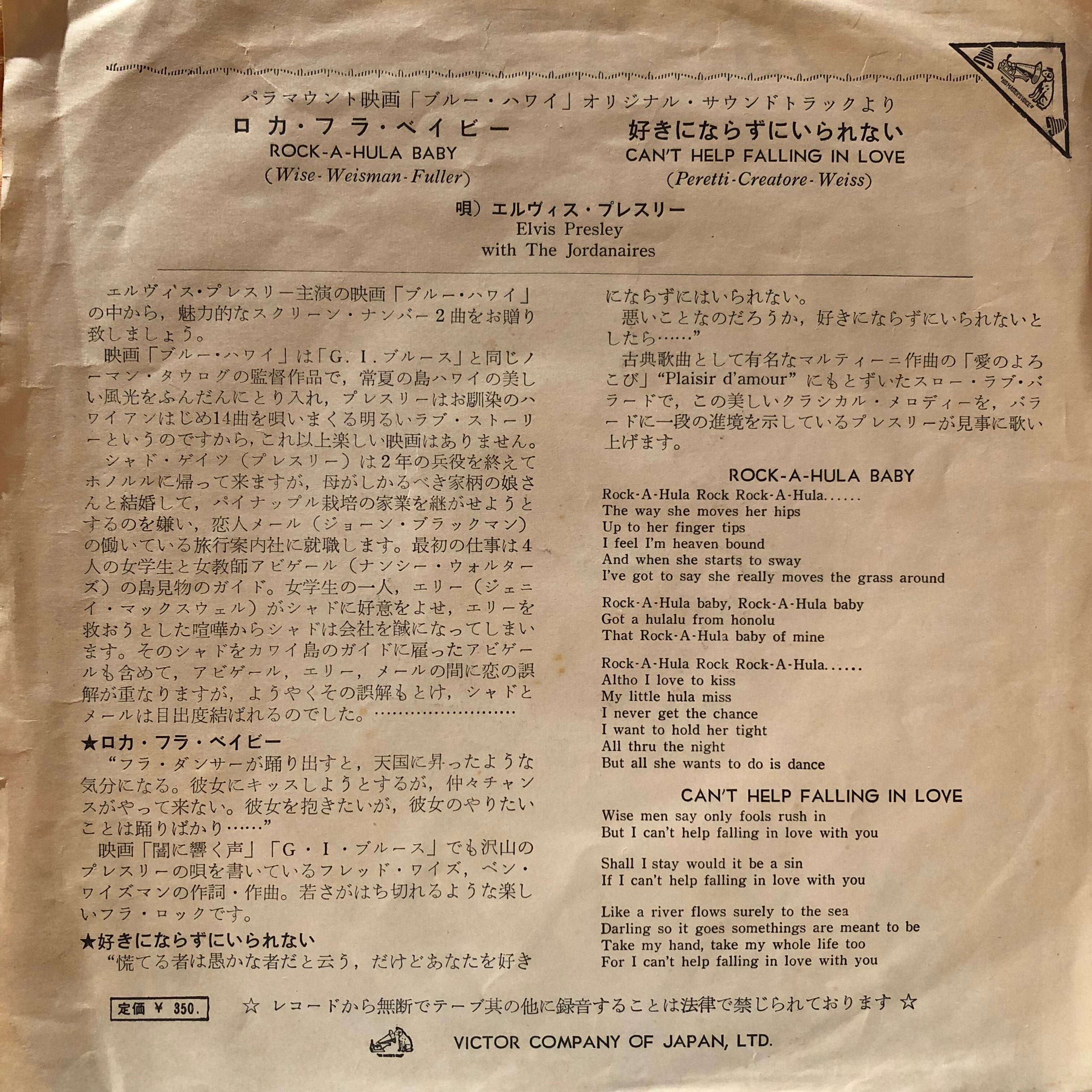 ’61年エルヴィス主演映画「ブルー・ハワイ」サウンドトラックからのカット。